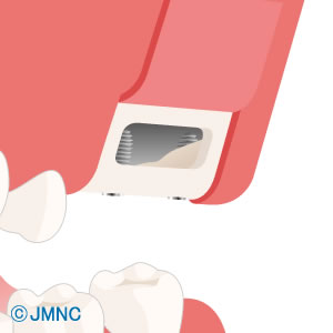 GBR(Guided Bone Regeneration:骨再生誘導法)骨の幅や厚みが不足している場合の治療法です。
