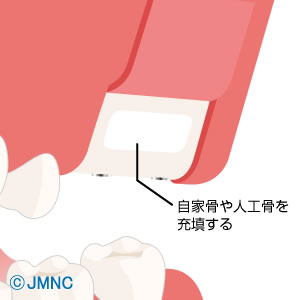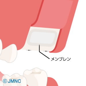 インプラント治療に必要な状態の骨の厚みや高さが足りない場合に行う歯槽骨を再生する方法です。